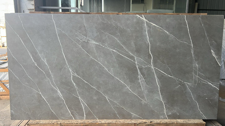 يتميز هذا اللوح بتصميم رخامي أنيق بعروق طبيعية باللون الابيض على خلفية جري ، مما يضفي لمسة من الفخامة والأناقة على أي مساحة