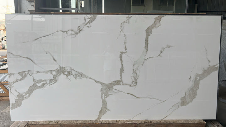 يتميز هذا اللوح بتصميم رخامي أنيق بعروق طبيعية باللون الذهبي على خلفية بيضاء ، مما يضفي لمسة من الفخامة والأناقة على أي مساحة