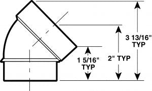 كوع طول 45 درجة PF242 من Vacumaid، أبيض، صناعة أمريكية، مثالي للتوصيلات في الزوايا، متين وسهل التركيب، متوافق مع أنظمة الكنس المركزي.