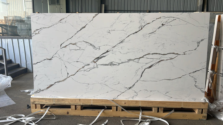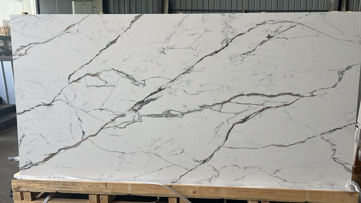 يتميز هذا اللوح بتصميم رخامي أنيق بعروق طبيعية باللون الرمادي على خلفية بيضاء ناصعة، مما يضفي لمسة من الفخامة والأناقة على أي مساحة