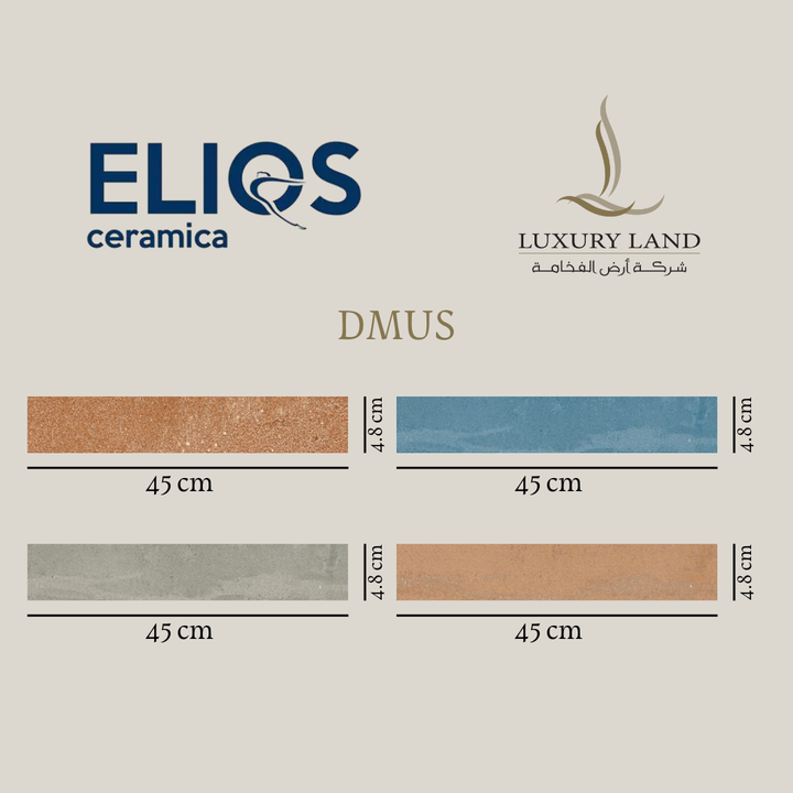 نقدم لكم حصرياً أول بلاط بورسلان إيطالي بمقاس فريد 4.8 × 45 سم في المملكة العربية السعودية. من صناعة إيليوس الإيطالية العريقة، يجمع هذا البلاط الاستثنائي بين الأناقة الأوروبية والجودة العالمية.